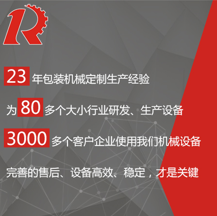 廣州市睿佳機械設備有限公司是國內專業(yè)從事自動化包裝機械產品,集研發(fā)、生產、銷售、服務于一體的制造公司,已通過ISO9001:2008質量體系認證,部分系列產品已通過歐盟CE認證。 經過多年的發(fā)展,公司專業(yè)生產:封尾機,灌裝機,旋蓋機,貼標機,包裝機,輸送機,噴碼機,灌裝生產線等機械設備。企業(yè)以開發(fā)生產包裝機械和訂做特殊包裝機械為主,所生產的包裝機械在同行和客戶中都得到一致的贊賞,以高技術和穩(wěn)定的質量遠銷東南亞和歐美。在國內,也成為多家知名藥廠、食品廠、化妝品廠指定使用產品。 睿佳機械:“想客戶之所想,急客戶之所急”既是睿佳對廣大客戶的承諾也是睿佳的宗旨,睿佳將與時代同步、銳意進取,以更優(yōu)質的服務回報廣大客戶對睿佳的信賴和支持。